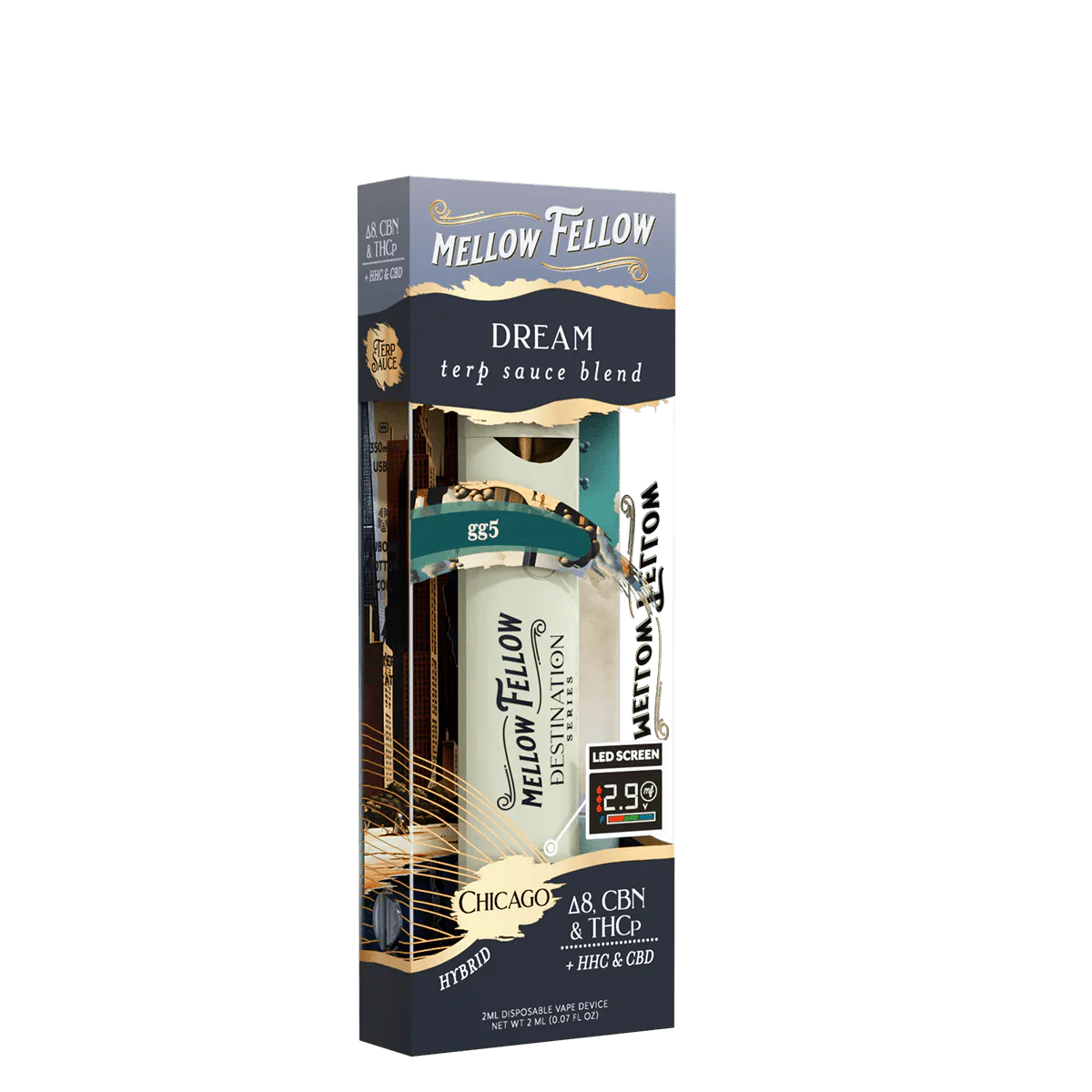 Embrace the calming influence of the Windy City with our Chicago Dream GG5 vape. Packed with premium terp sauce, this 2ml vape offers bold diesel flavors and hints of spicy notes. The heavy effects creep in, leaving you feeling âgluedâ to the couch in deep relaxation. Ideal as a sleep aid or muscle relaxant, this strain embodies the restful and introspective vibe of Chicago's tranquil evenings.