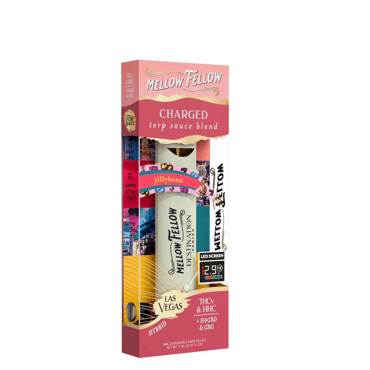Step into the vibrant energy of Las Vegas with our Vegas Charged Jillybean vape. This 2ml terp sauce disposable vape packs a punch with its Terp Sauce Blend. Savor the bold, tangy flavors of oranges and mango, designed to promote creativity and an upbeat, euphoric head high. Perfect for socializing or simply adding a little extra happiness to your day, this strain takes inspiration from the city's electrifying atmosphere and constant buzz of excitement.