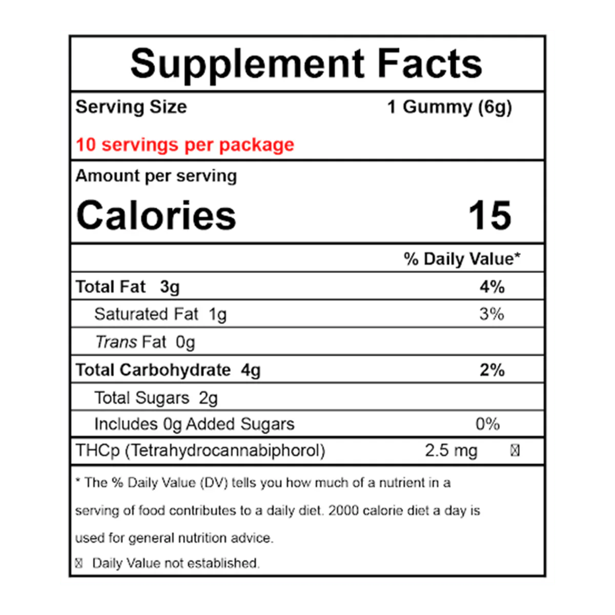 - 2.5mg THCp per gummy